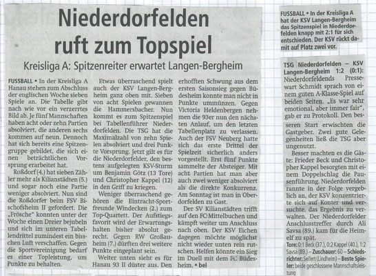 Nach der Rückkehr in die Kreisliga A Hanau ist es der ersten Mannschaft des KSV Langenbergheim gelungen sich in den letzten beiden Jahren wieder in der zweithöchsten Hanauer Liga zu etablieren.